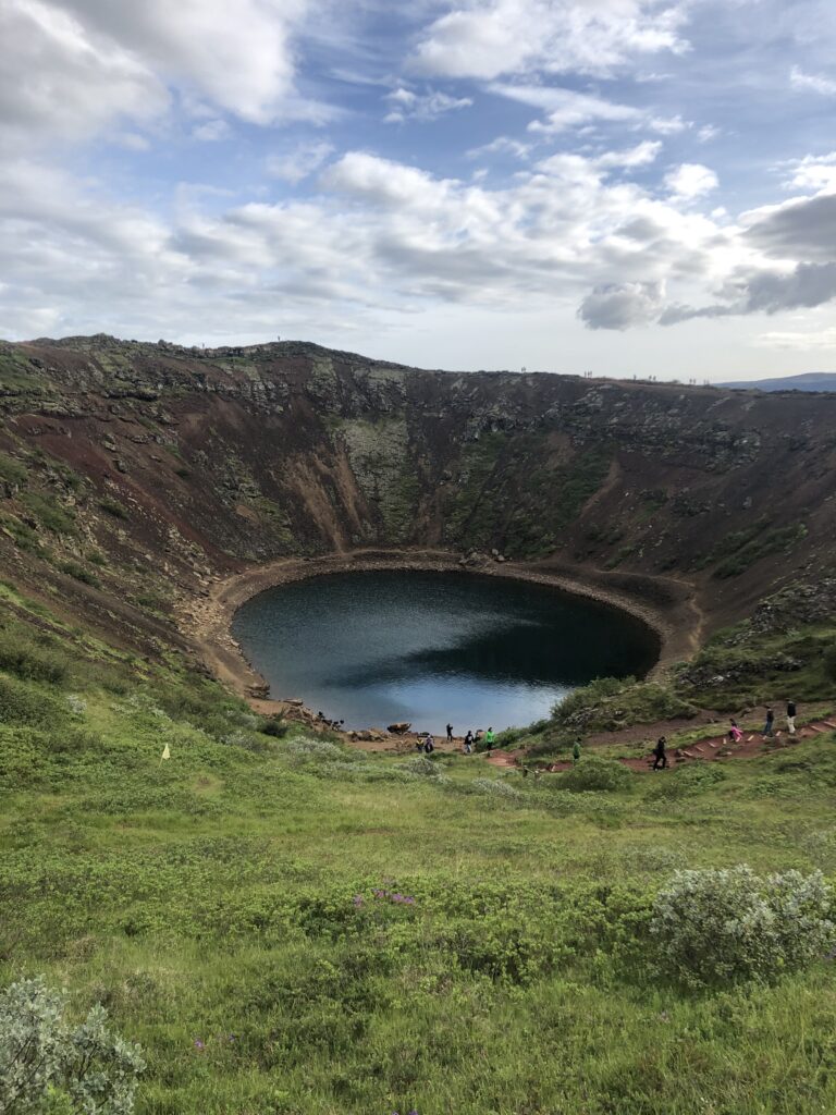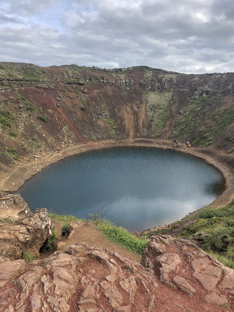 Vores sidste stop var Kerid Crater, et vulkansk krater sø. Det er vildt at se hvordan den røde farve er dominerende her og står i skarp kontrast til det grønne. Du kan gå en rute rundt om krateret og få en fantastisk udsigt da du ser den oppe fra. Du kan også gå ned til selve søen og mærke følelsen af at være omsluttet af den unikke natur.