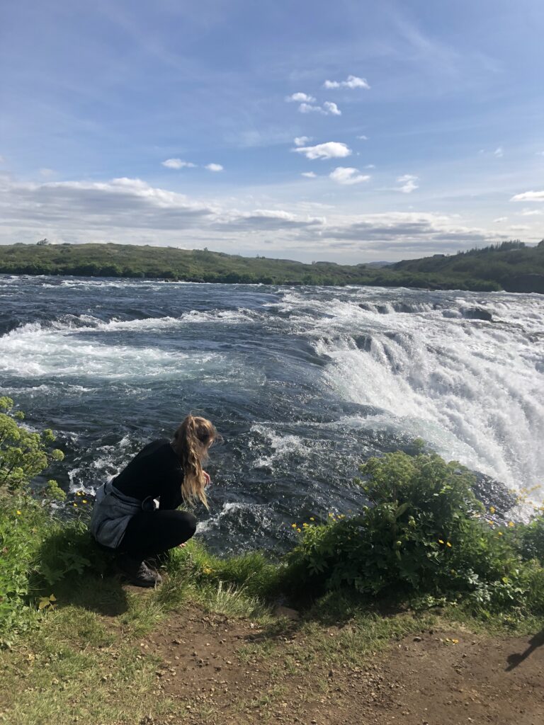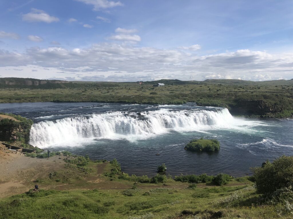 Vores næste stop lå kun 20min fra Gullfoss vandfald, og dermed en tur på cirka 18min. Selvom Faxi vandfald ikke er det største eller mest kraftfulde, var det et af vores yndlingsvandfald. Du stiller bilen ved en parkeringsplads, og så går du på en virkelig fin sti ned til vandfaldet. Ikke nok med at vandfaldet i sig selv var et fantastisk syn, så var den smukke natur der indrammede det, prikken over i´et.