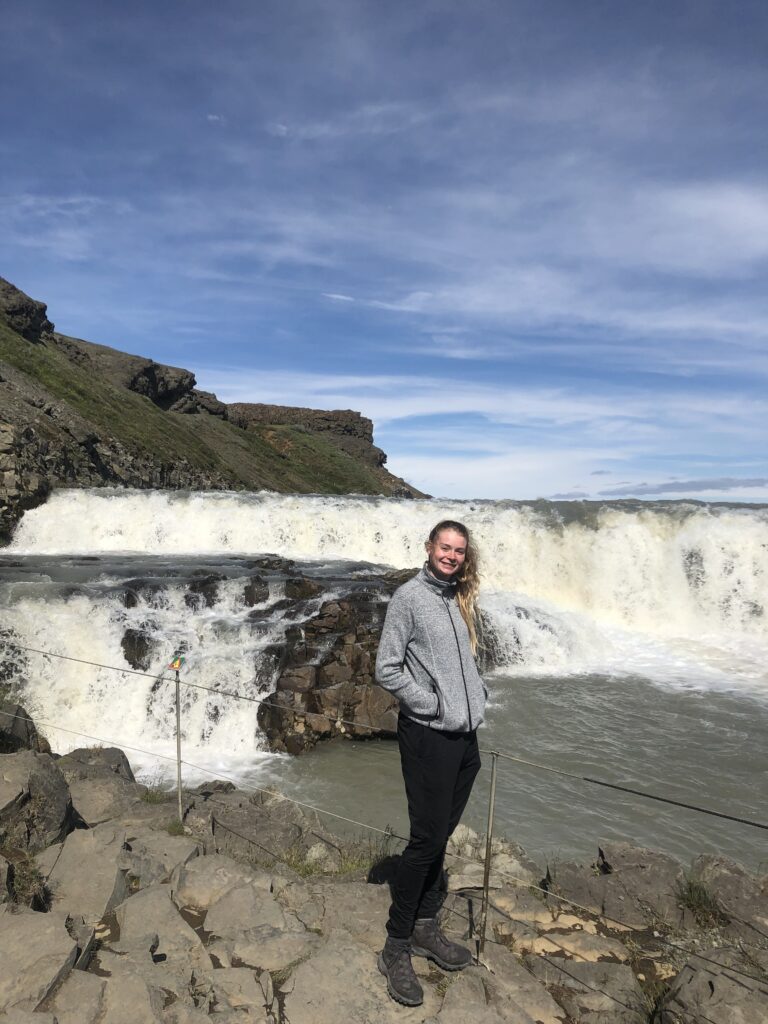 Turen gik nu til det sidste stop på The Golden Circle, hvilket var det berømte vandfald Gullfoss. Det tog kun 9min at køre derhen. Man skal være obs. på at der også er mange mennesker her.