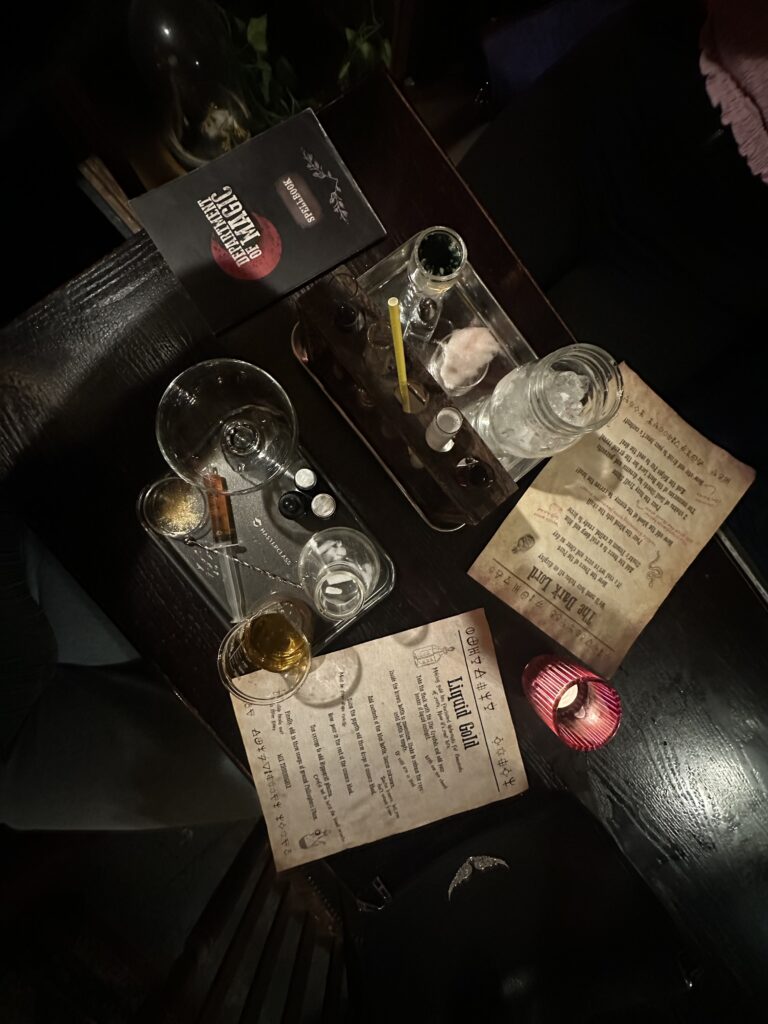 Hvis du er Harry Potter fan er denne bar helt genial. Du skal selv brygge dine magiske eliksirer og trylledrikke (drinks). De kan ændre farve eller ryge imens du laver dem, og mange af deres drinks er visuelt imponerende, hvilket gør det til en ekstra sjov oplevelse. Disse potions og cocktails, er inspireret af fiktive eliksirer fra Harry Potter-universet og andre fantasy-værker.